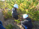 昨日,5,6年生が学区内の吉田浜近辺の防潮林に向かい,「グリーンベルトプロジェクト」職員の方の御指導のもと,防潮林の松の木の枝払いなど手入れを体験しました。本校では4年生において「グリーンベルトプロジェクト」の方にご来校いただき防潮林の必要性や東日本大震災による被害の後の復活への努力などを授業で教えていただいています。植樹された松もだいぶ育ち,高学年で実際に手入れを体験することで,防潮林の育成に自分たちも貢献できたという思いを持つことができました。