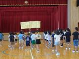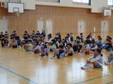 今日の業前の時間はたてわり活動(全校みまつ)でした。班ごとに分かれて体育館やホールで「はねこ踊り」の練習をしました。たてわり活動なので6年生がリードして練習を進めました。「それ,それ」などのかけ声にも力を入れて練習し,子供たちの声が校内に響きわたっていました。たくさんはねて踊るので良い運動にもなったようです。9月27日土曜日には吉田体育館で行われる「ふれあい健康まつり」で有志が,11月1日土曜日の「ながとろ発表会」では1,2年生がはねこ踊りを披露します。