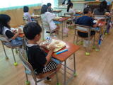 今日は給食センターから3名の職員の方々が来校し,各学年の給食の様子などを見ていただきました。