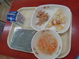 写真は2年生です。みんな落ち着いて静かに味わって食べていました。今日のメニューは「牛乳」「ごはん」豚丼の具」「コーンじゃが」「コンソメスープ」です。おいしくいただきました。ごちそうさまです。