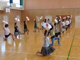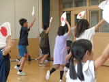9月27日土曜日に学区内の吉田体育館で行われる「吉田東部地区まちづくり協議会」主催のミニ運動会「ふれあい健康まつり」で,有志が伝統芸能「はねこ踊り」を披露します。学校においては運動会や学習発表会などで披露している踊りです。昼休みに体育館で練習会を行いました。大きなかけ声とともに,扇子を持って元気いっぱい踊っていました。子供たちの一生懸命に踊る姿が,いつもお世話になっている地域の方々の元気につながっていただければと願っています。
