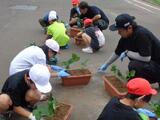 JA仙台青年部の学区内イチゴ農家の方々を講師に迎え,4年生がプランターにイチゴの苗を植えました。